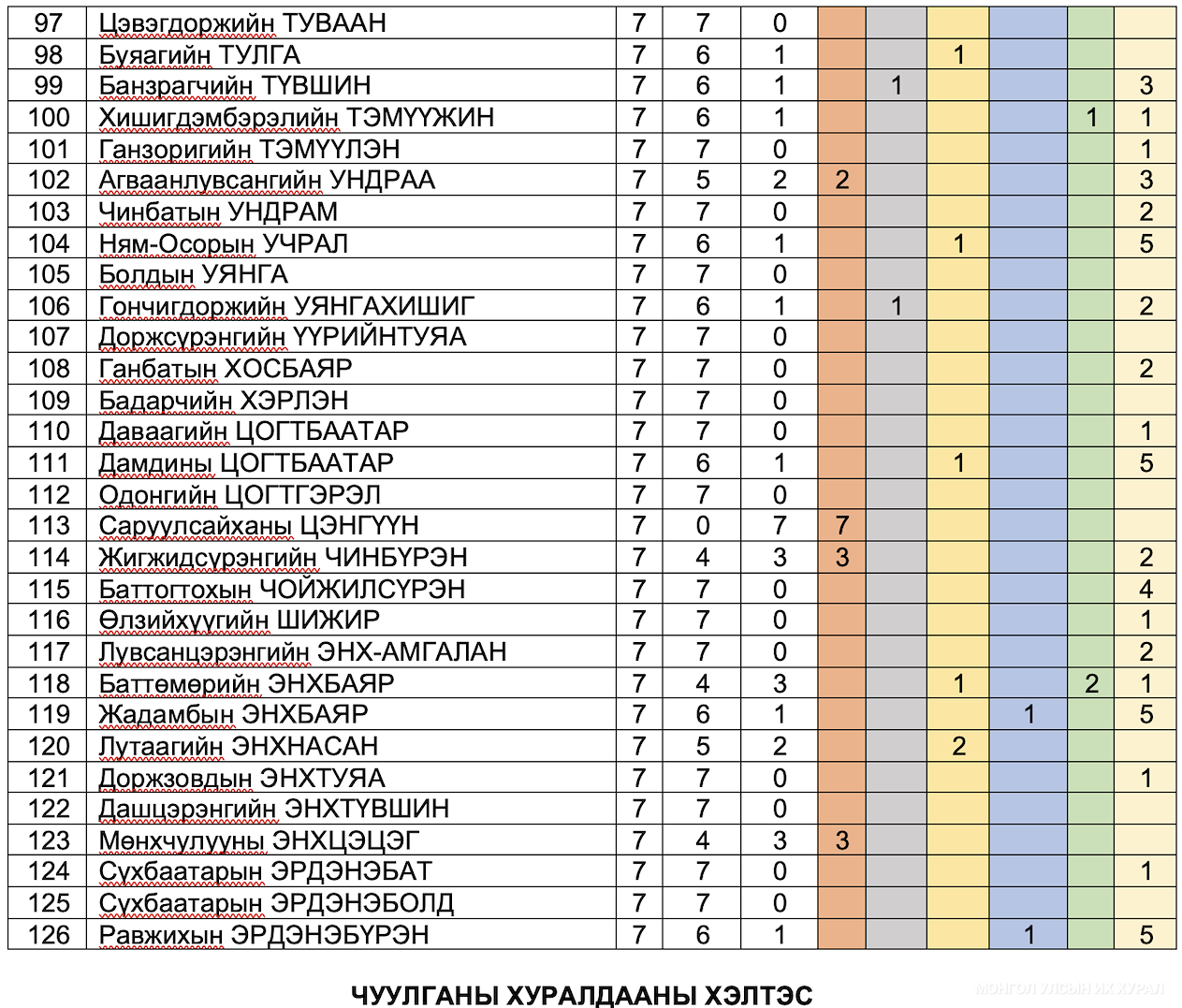 Ж.Ганбаатарын тухайд, долоон удаа эмнэлгийн чөлөөтэй байсан бол С.Цэнгүүн долоон удаа гадаадад томилолттой байсан аж.