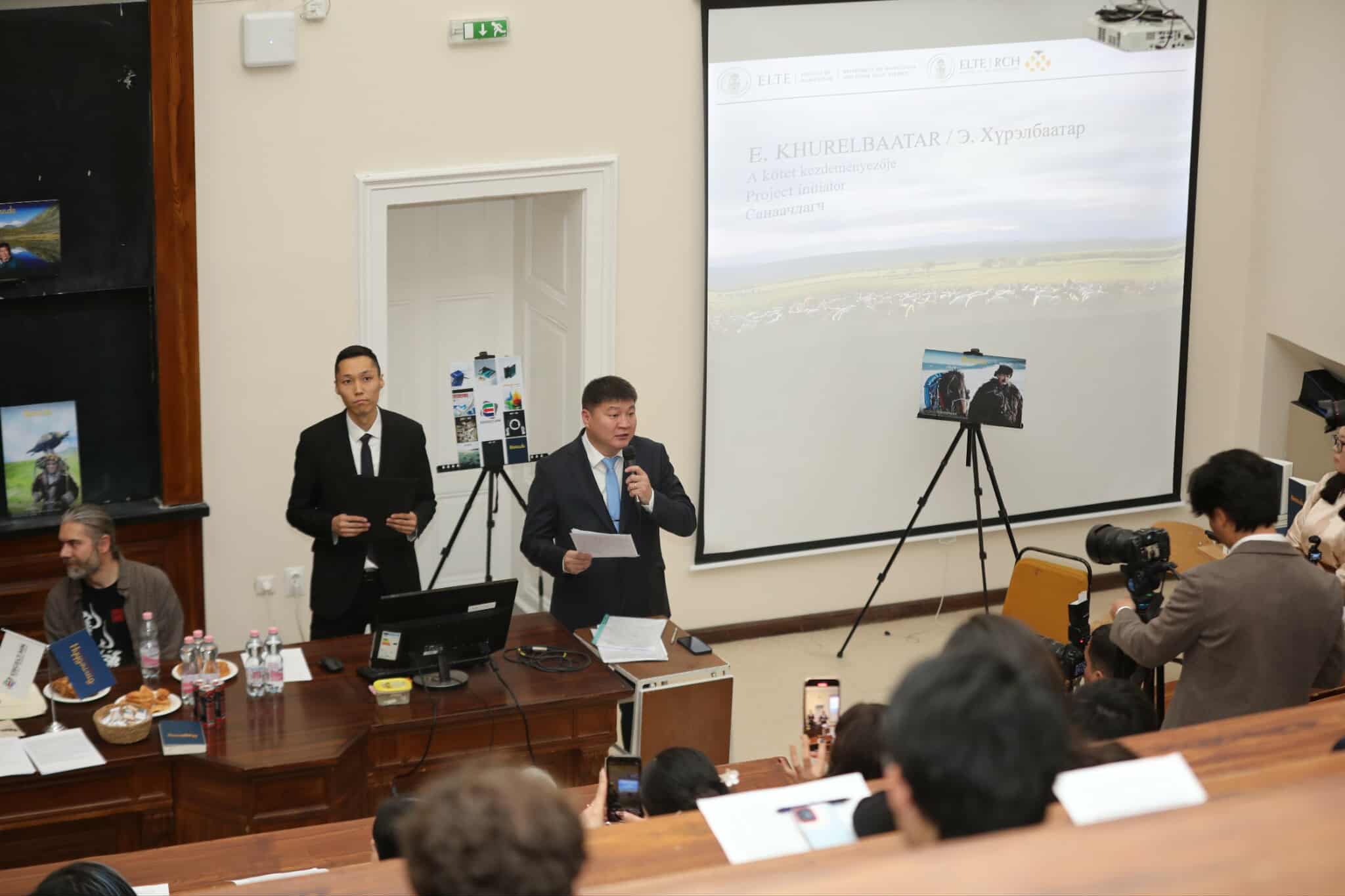 “Сүүлчийн нүүдэлчид” хөрөг номыг нээж Эргэлт.мн мэдээллийн сайтын Ерөнхий эрхлэгч Э.Хүрэлбаатар “Оюунлаг эргэлт медиа группын дэргэдэх эрэн сурвалжлах сэтгүүлзүйгээр дагнан үйл ажиллагаа явуулдаг Эргэлт.мн мэдээллийн сайтын сэтгүүлчдийн хөрөг бүтээлийн “Сүүлчийн нүүдэлчид” хэмээх номыг бид хүн төрөлхтний соёл иргэншлийн үнэт өлгий Европ тив, Унгарын Будапештад нээж байгаадаа ихэд бэлгэшээж байна. Энэхүү ном нь манай сэтгүүлчдийн багагүй цаг хугацаа, эрэл хайгуул, хөдөлмөрөө зориулсан нүүдэлчин Монголын ондоошил, бахархлыг бататгасан бодит амьдрал, түүх, баримтаас сэдэвлэсэн хөрөг бүтээлийн чуулган юм. “Сүүлчийн нүүдэлчид” номыг бид Монголын уншигчдаас гадна дэлхийн монголч эрдэмтэд, сонин ховор сэдэв эрж явдаг уншигч, зохиолч, судлаачдын гарын авлага, ширээний найз болно гэж найдаж байна. Одоогоор англи, монгол хэл дээр хэвлэгдээд байгаа уг бүтээлийг бид олон хэлээр хөрвүүлэн томоохон номын сангууд, дэлхийн оюун санааны өвд хадгалуулан үлдээх зорилготой. “Сүүлчийн нүүдэлчид” ном нь монголчуудын амьдралын ховор содон түүхийг англи хэл дээр хэвлүүлэн олон нийтэд хүргэж буй сэтгүүл зүйн анхны бүтээл гэдгээрээ онцлог” гэлээ.