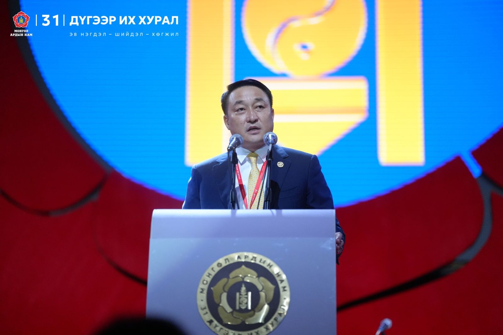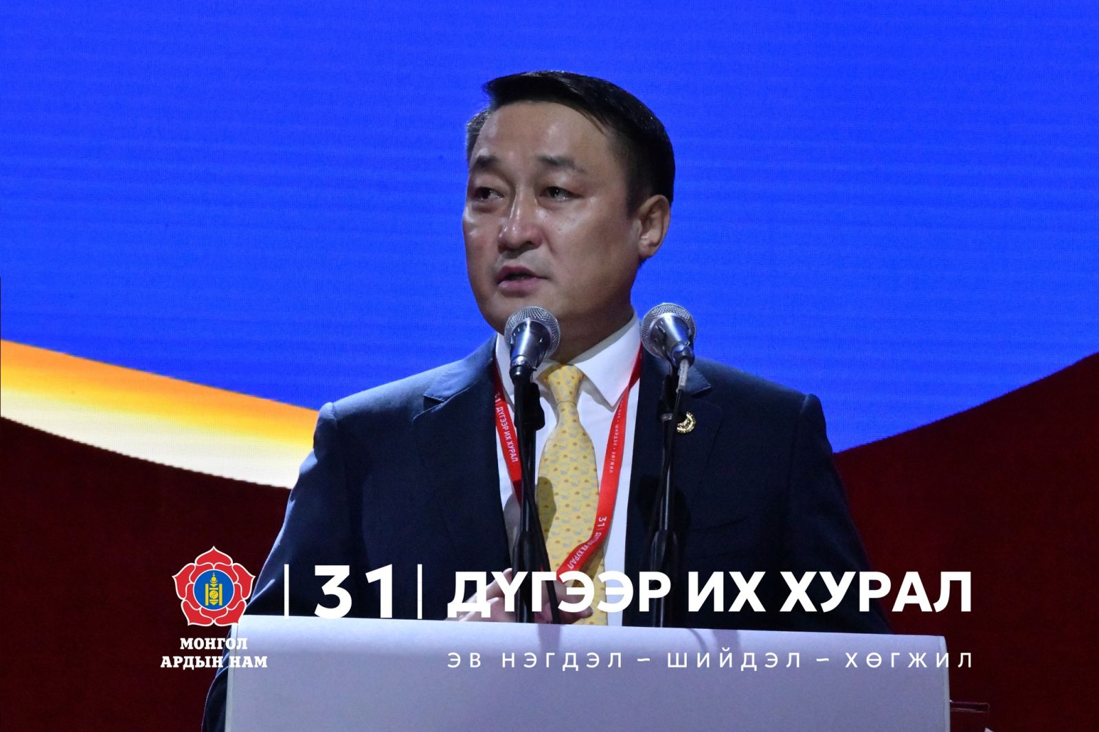 Монгол Ардын Намын 31 дүгээр Их хурал нь “Эв нэгдэл-шийдэл-хөгжил” уриан дор явагдаж байгаа юм. Аймаг, нийслэл, сум, дүүргийн 2247 төлөөлөгч оролцож байгаа нь 1 төлөөлөгч 140 гишүүн төлөөлж байна. Нийт төлөөлөгчдийн 56.7 хувь анх удаа оролцож, 40.1 хувийг эмэгтэйчүүд эзэлж байна. Дундаж нас 46 байгаа нь залуучуудын оролцоо их байгааг харуулж байна.