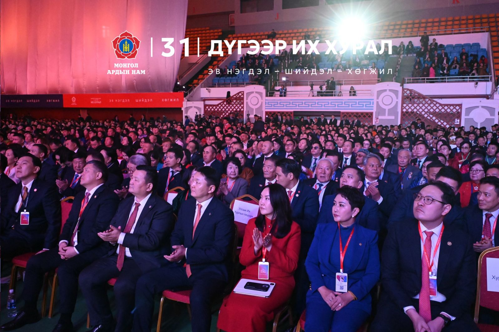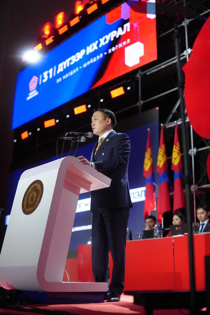 УИХ-ын дарга асан, УИХ-ын гишүүн Д.Амарбаясгалан Монгол Ардын Намын 31 дүгээр Их хуралд мэндчилгээ дэвшүүллээ. Тэрбээр Их хурлын төлөөлөгчдөд хандан хэлсэн үгийнхээ эхэнд ачааны хүндийг үүрч, энэ намын ялалтын төлөө, энэ намын нэр дэвшигчийг ялуулахын төлөө гутлынхаа улыг эргэтэл зүтгэж ирсэн намын анхан шатны төлөөлөгчдөд талархал илэрхийлээд анхан шатныхан ийм олуулаа цугласанд баяртай байгаагаа тодотгов. “Та бид, намын их хурлаараа үзэл санаа, удирдлага зохион байгуулалт, улс орныхоо язгуур эрх ашигтай холбоотой олон асуудлыг нээлттэй шүүн хэлэлцэж, ухаан бодлоо уралдуулан, харилцан ойлголцолд хүрч, нэгдэн нягтарч ирсэн түүхтэй” хэмээн онцоллоо. Би 18 настайдаа МАН-д элссэн. Тэр үеэс хойш 27 жилийн хугацаанд энэ нам, улс орныхоо төлөө үнэт зүйлдээ үнэнч байж, тууштай зүтгэж ирсэн. Намын аппаратад найман жил, Ерөнхий нарийн бичгийн даргаар найман жил нийт 16 жил ажиллах хугацаандаа та бүхэнтэйгээ хамт УИХ-ын 2016, 2020, 2024 оны гурван удаагийн сонгууль, 2021 оны Ерөнхийлөгчийн сонгуулийн түүхэн ялалтуудыг байгуулсан бахархам цаг хугацааг эргэн санахад таатай байна гээд энэ бүх хугацаанд МАН-ын үнэт зүйл, үзэл баримтлал, үргэлжүүлэн шинэчлэх үйл хэргийн төлөөх их итгэл үнэмшил минь хэзээ ч өөрчлөгдөөгүй. Монголын Улсынхаа хөгжил, тогтвортой ирээдүйг та бүхэнтэйгээ хамтдаа бүтээх миний итгэл үнэмшил хэчнээн бэрхшээл, сорилттой тулгарсан ч хэзээ ч мохоогүй, цаашид ч улам бүр хурцлагдсаар байх болно хэмээн Их хурлын төлөөлөгчдөд илэрхийллээ. Үгийнхээ төгсгөлд тэрбээр “Бид олон ялалтыг үргэлж судалгаа, туршлага, төлөвлөгөөтэй хослуулан хийж ирсэн. Ирэх сонгуулиудыг ч тооцоотой, нийгмийн хүлээлт, бодит судалгааны үр дүнд тулгуурлан хийх ёстой. 2025 онд хийсэн судалгаагаар МАН-ын рейтинг тогтмол буурч байгааг анхааруулга болгон хүлээн авч, шинэ стратегиа шуурхай боловсруулах цаг ирсэн. Өнөөдөр шинээр сонгогдох МАН-ын дарга УИХ-ын сонгуульд гурав дараалан ялсан ялалтын буухиаг үргэлжлүүлэн, дөрөв дэх дараалсан ялалтыг байгуулж, намын эв нэгдэл, хөгжил шинэчлэл хийгээд улс орныхоо хөгжлийн төлөө их зүйл хийнэ гэдэгт итгэж байна” гэлээ. “Энэ цаг үед уламжлалт ойлголтын “нам” биш, харин үр дүнд суурилсан, нээлттэй, оролцоотой, тэгш боломжийг хангаж чаддаг, технологид тулгуурласан шинэ цагийн намын загвар шаардлагатай болжээ. Бид энэ суурийг өмнөх жилүүдэд хамтдаа тавьсан. Харин одоо уг загварыг жинхэнэ утгаар нь хэрэгжүүлж, үе шаттайгаар бүтээх цаг ирсэн гэж үзэж байна” гээд МАН-ын даргаар сонгогдох хүний хийх ёстой найман зорилтыг танилцууллаа.