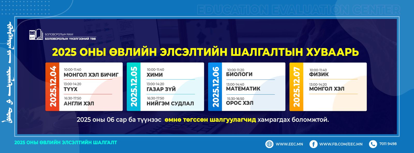 Өвлийн элсэлтийн шалгалт маргааш /2025.12.4/ эхэлнэ.