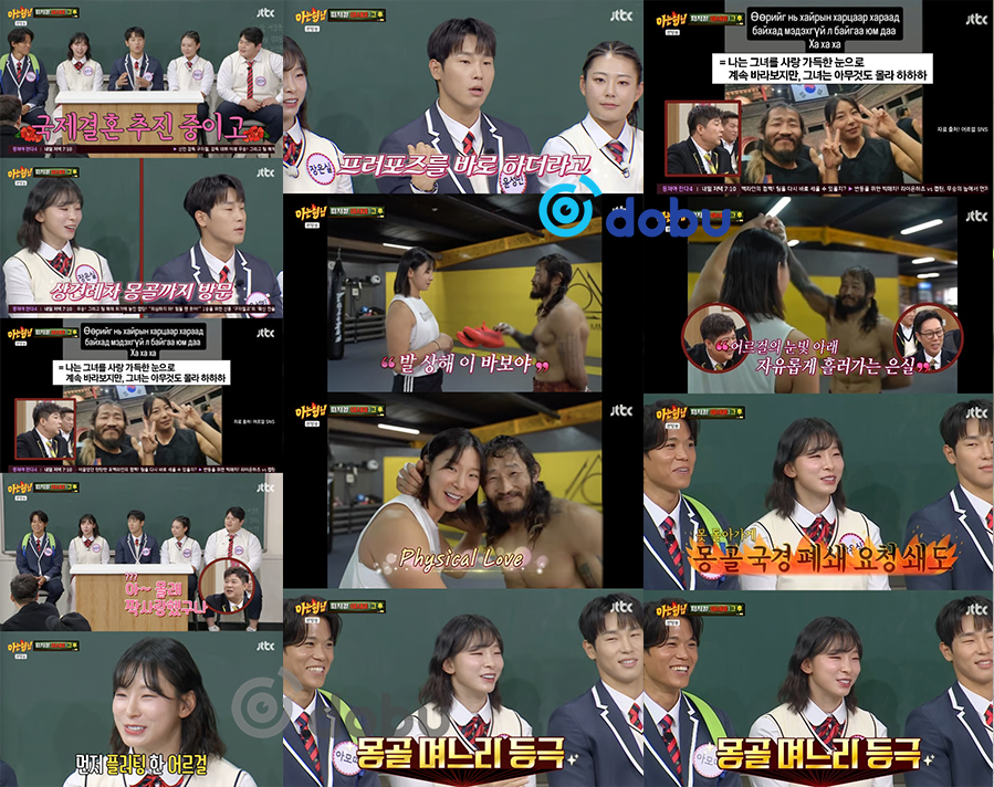 Тэдний дунд Юн Сон Бин тоглоом шоглоомтойгоор үргэлжлүүлж, Жан Ин Сил болон Монголын тамирчин Энх-Оргил нарын хооронд романтик хайрын холбоо байдаг гэв. Тэрээр "Тийм учраас бид олон соёлт гэр бүлийг (өөр улсын хосууд гэр бүл болох) эрэлхийлж байгаа бөгөөд саяхан хадам эцэг эхтэйгээ уулзахаар Монголд очоод ирсэн" гэж хэлээд бүгдийг гайхшируулав.