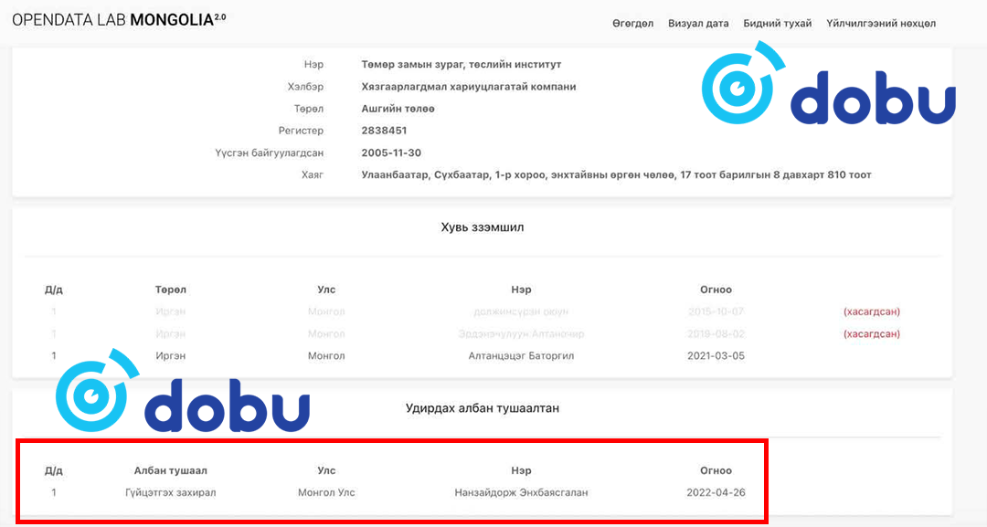 “Монголын эзэн” Д.Эрдэнэбилэг 2015 онд өөрийн төрсөн эгч Д.Оюуны нэр дээр дээр дурдсан “Төмөр замын зураг төслийн институт” компани байгуулж, Хандгайт өртөөний 25 километр замыг Дорнод аймгийн Чингисийн даланг хуулж авчран тавьж маргаан дэгдээж байв. Мөн Дарханы төмөрлөгийн үйлдвэрийн мөнгөөр 300 вагон худалдан авч, энэхүү 300 вагоноо тендерт ялаад буй “Төмөр замын зураг төслийн институт” компанийнхаа нэр дээр оруулж ирсэн байдаг. Энэ тухайд Засгийн газрын хэрэг эрхлэх газрын даргаар ажиллаж байсан Д.Амарбаясгалан асуудал үүсгэн, АТГ-т шалгуулж байсан мэдээлэл нь ч бий.