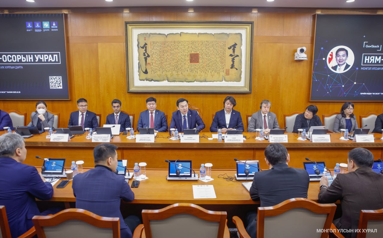 Монгол Улсын Их Хурлын Төрийн байгуулалтын байнгын хороо, Инновац, цахим бодлогын хөгжлийн дэд хороо, Олон улсын цахилгаан холбооны байгууллага, Цахим хөгжил, инновац, харилцаа холбооны яам хамтран “Төрийн байгууллагуудын уялдаа холбоог сайжруулах, нэгдсэн бодлогоор үйл ажиллагаа явуулахыг дэмжих дижитал дэд бүтцийг ГовСтак (GovStack) санаачилгын хүрээнд бүрдүүлэх нь” сэдэвт хэлэлцүүлгийг өнөөдөр /2025.12.16/ Төрийн ордны Их засаг танхимд зохион байгууллаа.