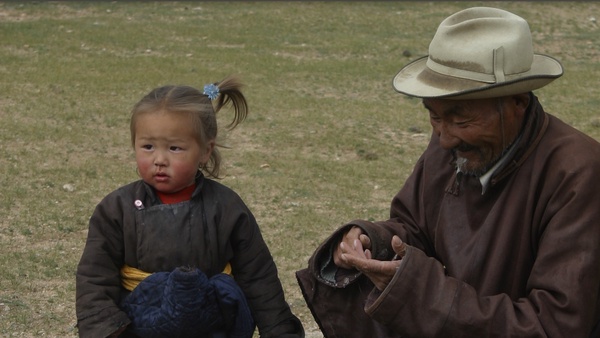 Ач хүү, өвөө хоёр ярилцаж байна.