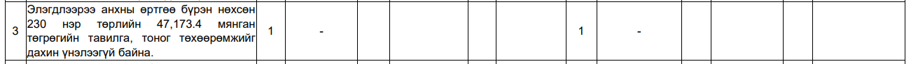Элэгдлээрээ анхны өртгөө бүрэн нөхсөн 230 нэр төрлийн 47 сая 173 мянган төгрөгийн үнэ бүхий тавилга, тоног төхөөрөмжийг дахин үнэлээгүй байна.