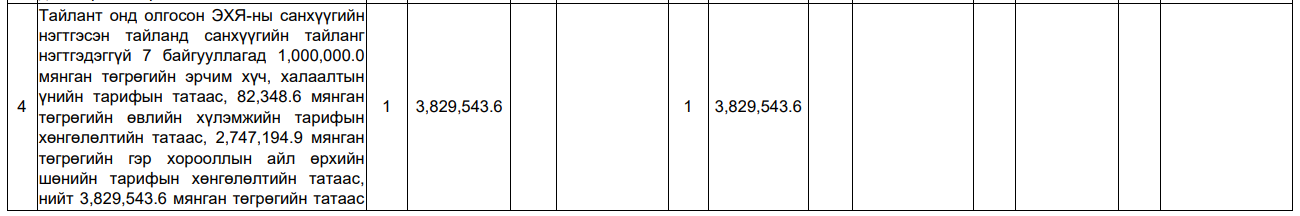 Эрчим хүчний яамны тайланд санхүүгийн тайланг нэгтгэдэггүй 7 байгууллагад нийт 3 тэрбум 829 сая 543 мянган төгрөгийн татаас олгожээ. Үүнийгээ тооцоо нийлж, актаар баталгаажуулаагүй байна.