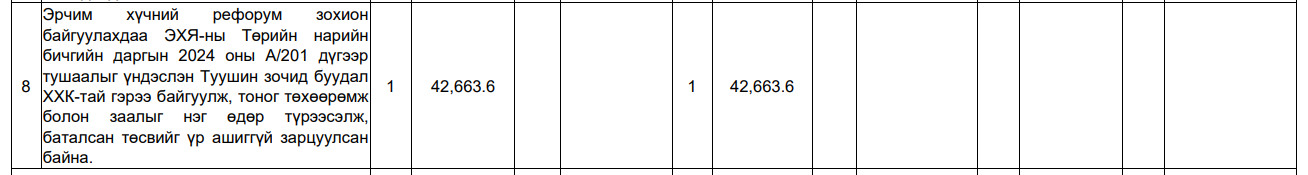 Эрчим хүчний рефорум зохион байгуулахдаа "Туушин" зочид буудлын заал, тоног төхөөрөмжийг нэг өдөр түрээсэлжээ. Үүндээ 42 сая 663 мянган төгрөгийн зарцуулсан байна. Үүнийг аудитаар үр ашиггүй зарцуулалт хэмээн дүгнэсэн байгаа юм.