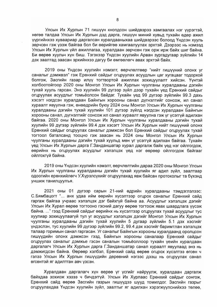 Г.Занданшатар: Засгийн газар баялгийн хулгай, нүүрсний хулгайтай тууштай, хатуу тэмцэнэ