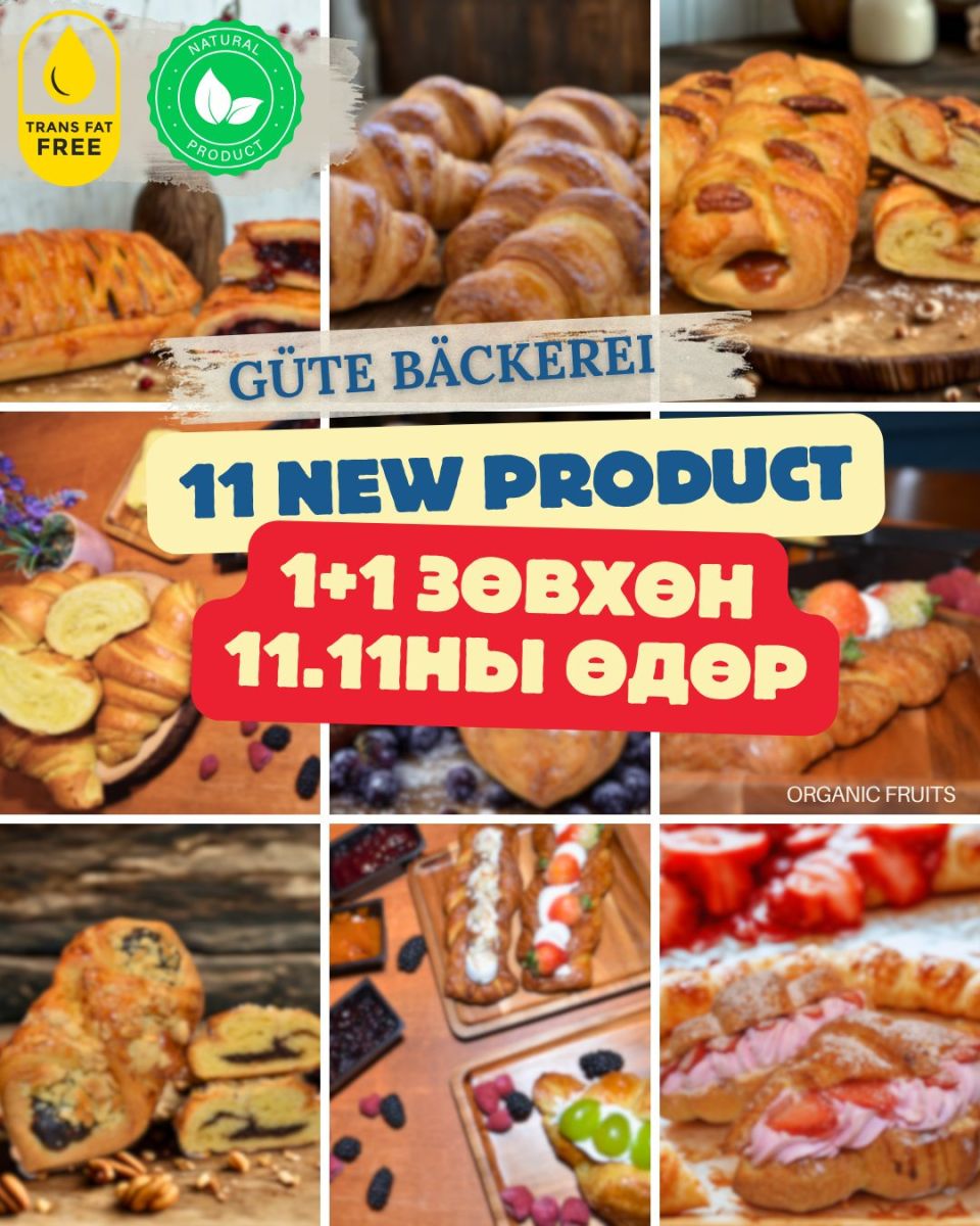 "Güte bakery" таны дуртай кроссант, эклер болон шинэхэн 11 төрлийн амттанд зориулж 1+1 буюу нэгийн үнээр хоёрыг авах боломжтой урамшуулал зарлав. Урамшуулал зөвхөн өнөөдөр бөгөөд Номин сүлжээ дэлгүүрийн дараах салбаруудад болно. Тодруулбал:
