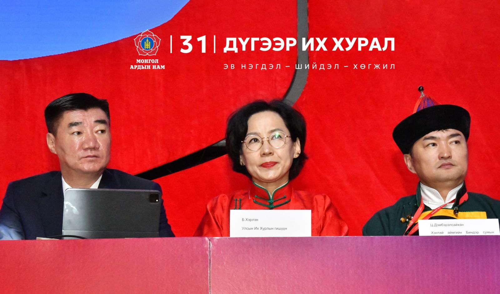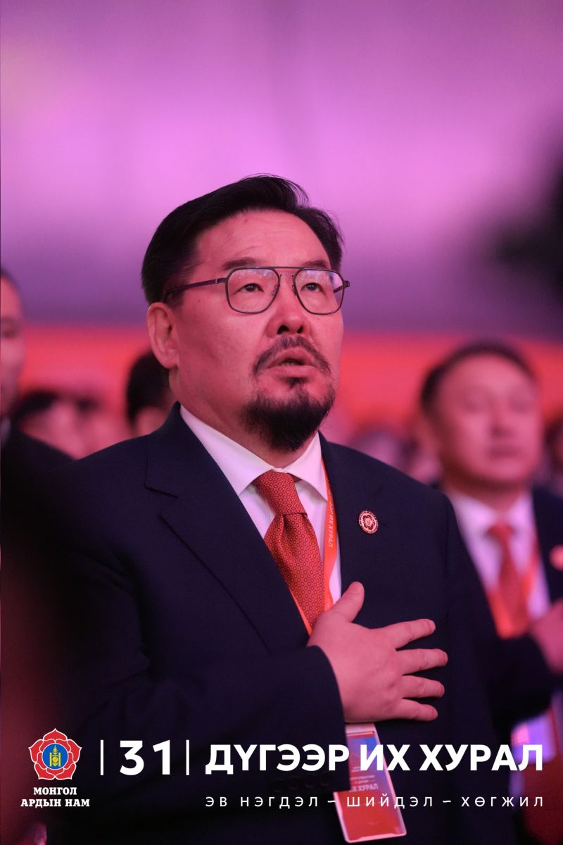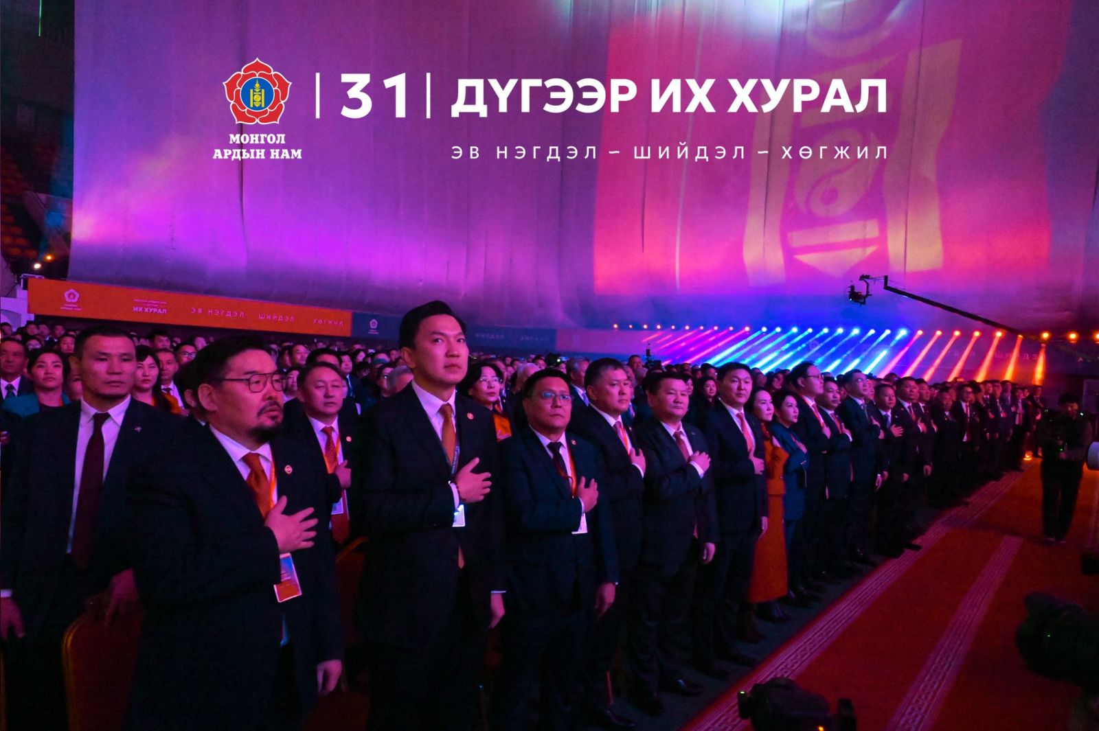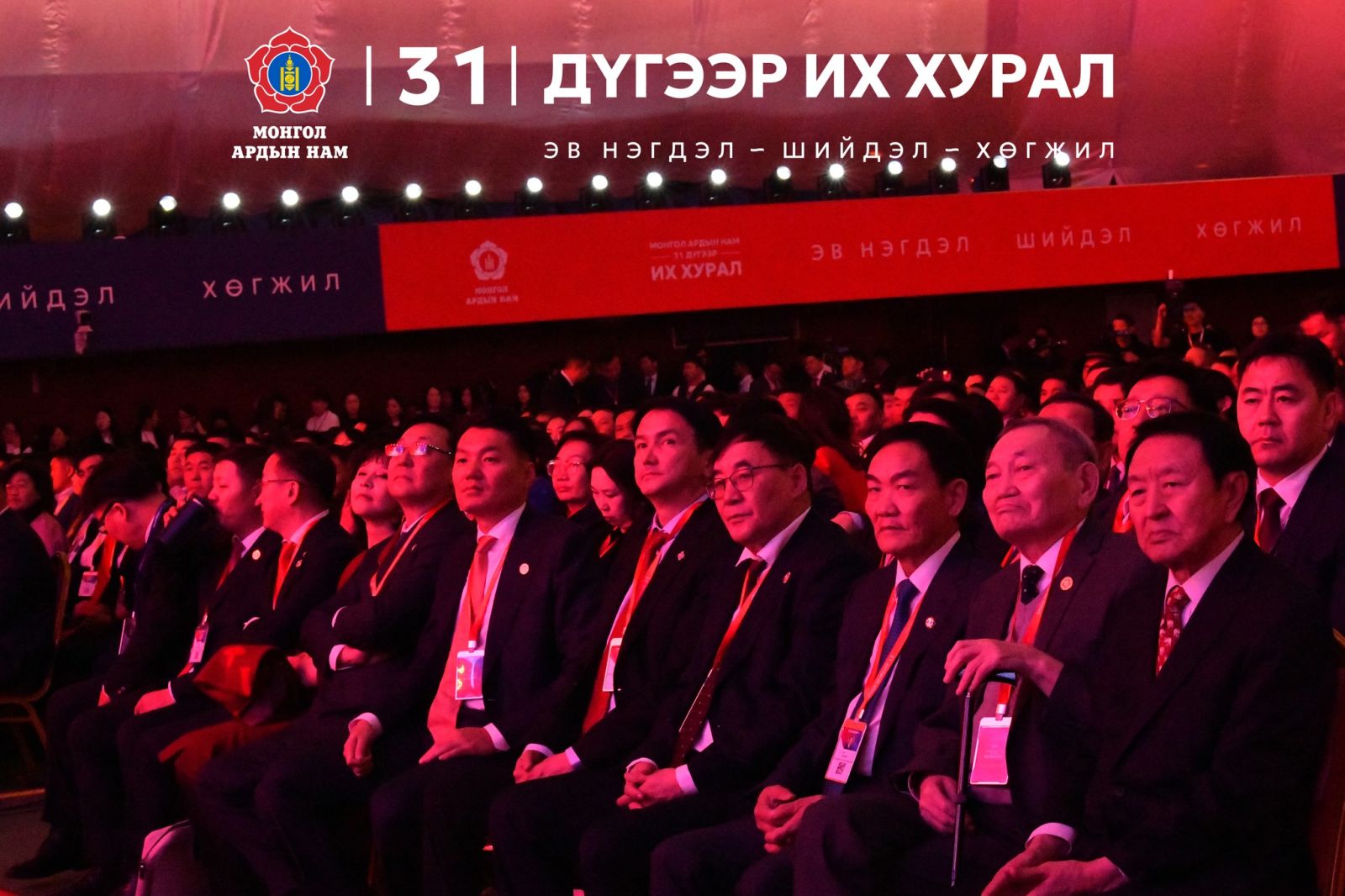 Монгол Ардын Намын 31 дүгээр Их хурал нь “Эв нэгдэл-шийдэл-хөгжил” уриан дор явагдаж байгаа юм. Аймаг, нийслэл, сум, дүүргийн 2247 төлөөлөгч оролцож байгаа нь 1 төлөөлөгч 140 гишүүн төлөөлж байна. Нийт төлөөлөгчдийн 56.7 хувь анх удаа оролцож, 40.1 хувийг эмэгтэйчүүд эзэлж байна. Дундаж нас 46 байгаа нь залуучуудын оролцоо их байгааг харуулж байна.