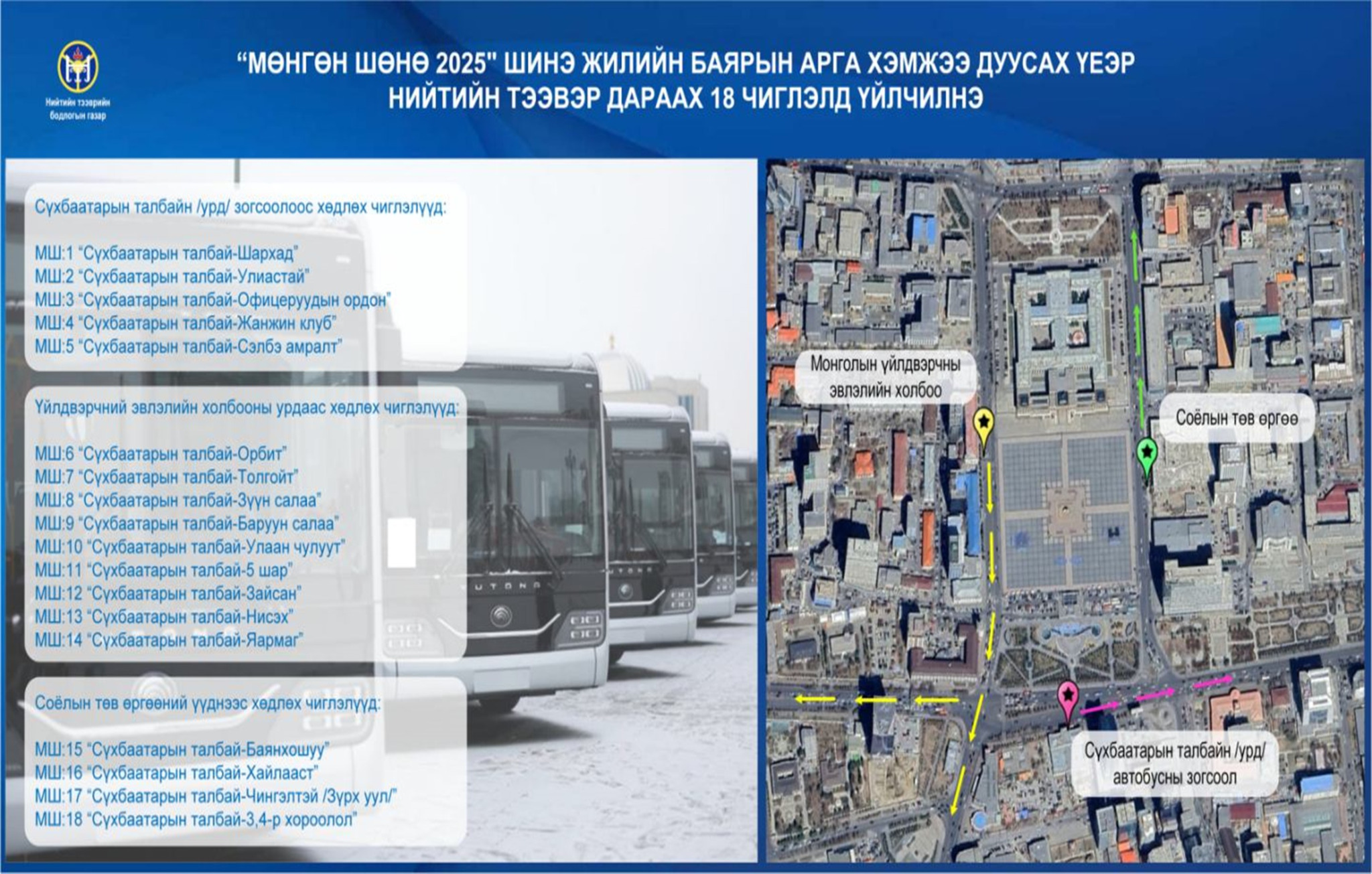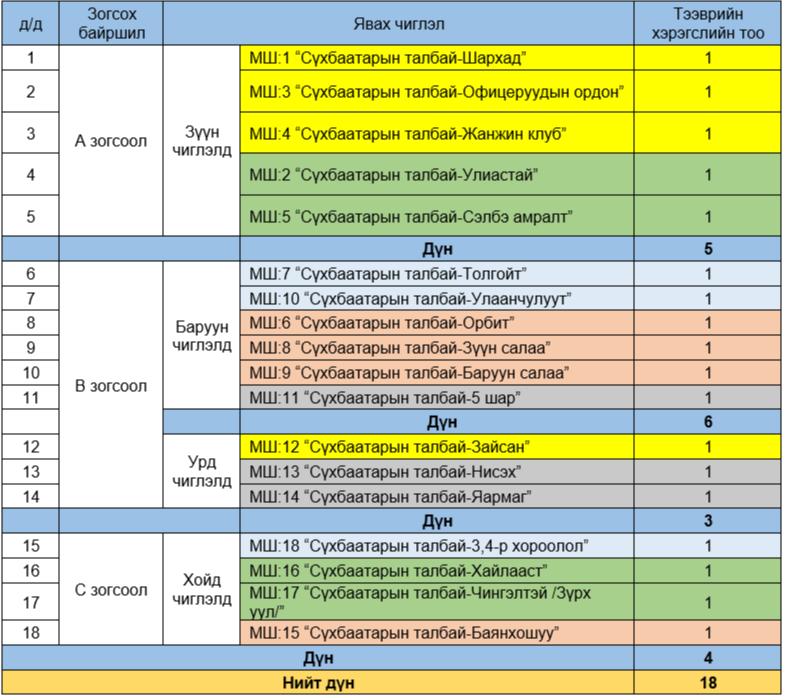 Үйлчлэх чиглэл болон зогсоолын мэдээлэл: