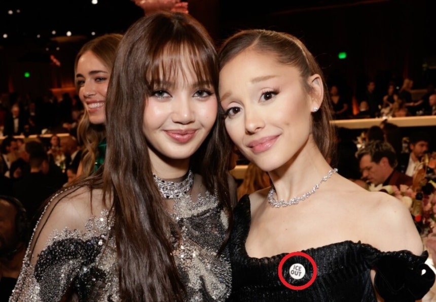 Дэлхийн алдартай поп од Ариана Гранде тэр өдөр хар даашинз дээрээ. “ICE OUT" гэсэн бичигтэй цагаан тэмдэг зүүжээ. Энэ нь мөн Цагаачлал, Гаалийн албаны эсрэг эсэргүүцлийн бэлгэдэл байсан бөгөөд Трампын засаг захиргааны цагаачлалын эсрэг хатуу арга хэмжээ, хууль сахиулах байгууллагуудын хүчирхийллийн эсрэг нэгдэж байгаагаа илэрхийлжээ. Энэхүү тэмдэгүүд нь АНУ даяар тархаад байна.