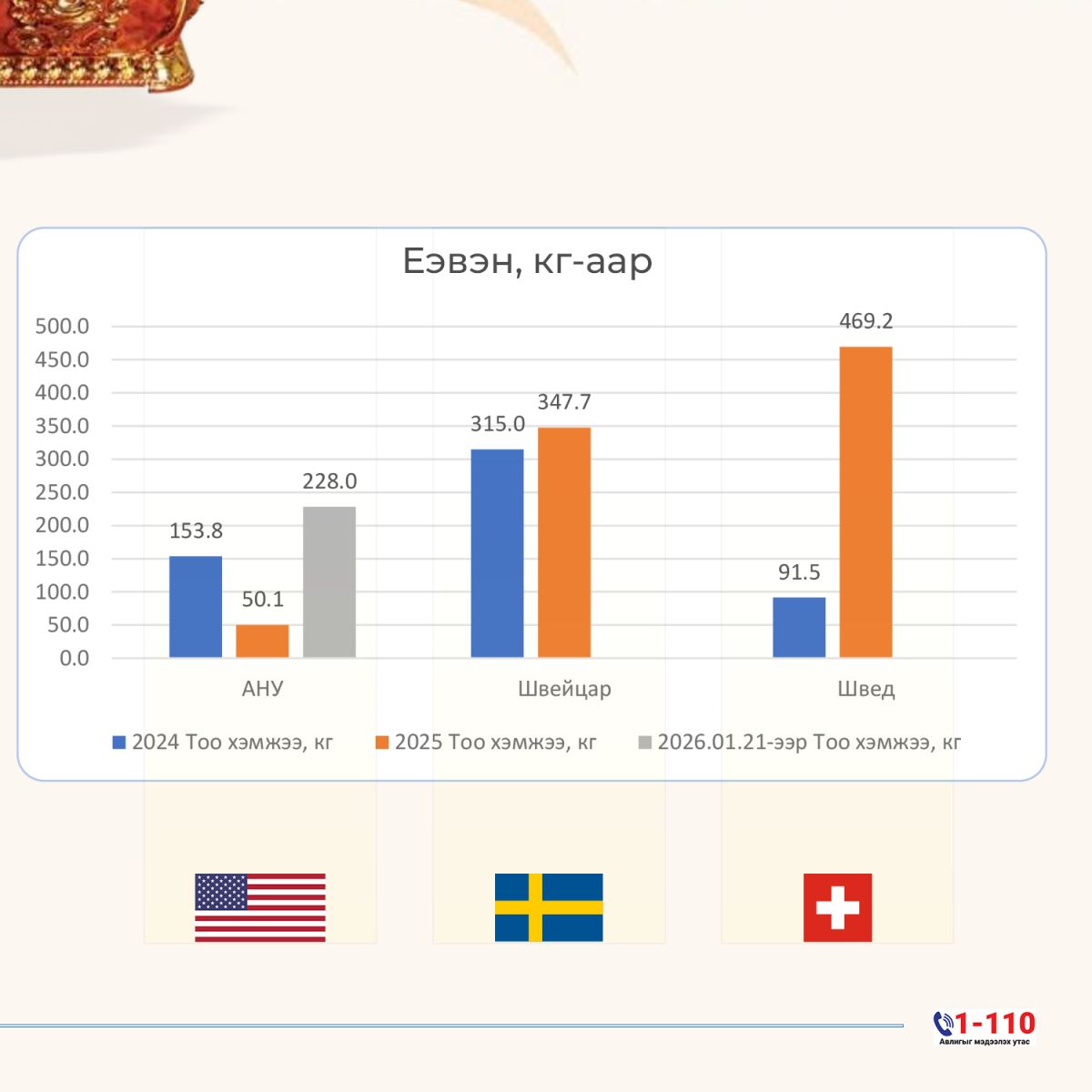 Харин 2025 оны байдлаар Швед улс руу хийгдсэн еэвэнгийн экспортын хэмжээ хамгийн өндөрт хүрч, Европын зах зээлд Монголын уламжлалт гурилан бүтээгдэхүүний эрэлт нэмэгдэж буйг илтгэж байна.