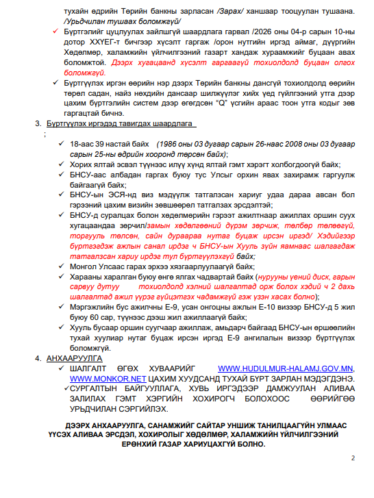 Бүртгүүлэх иргэдэд тавигдах шаардлага: