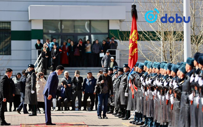 Ерөнхийлөгчийг төв талбайд дүүргийн удирдлагууд, Багануур цэргийн хотхоны хүндэт харуул угтаж авлаа.